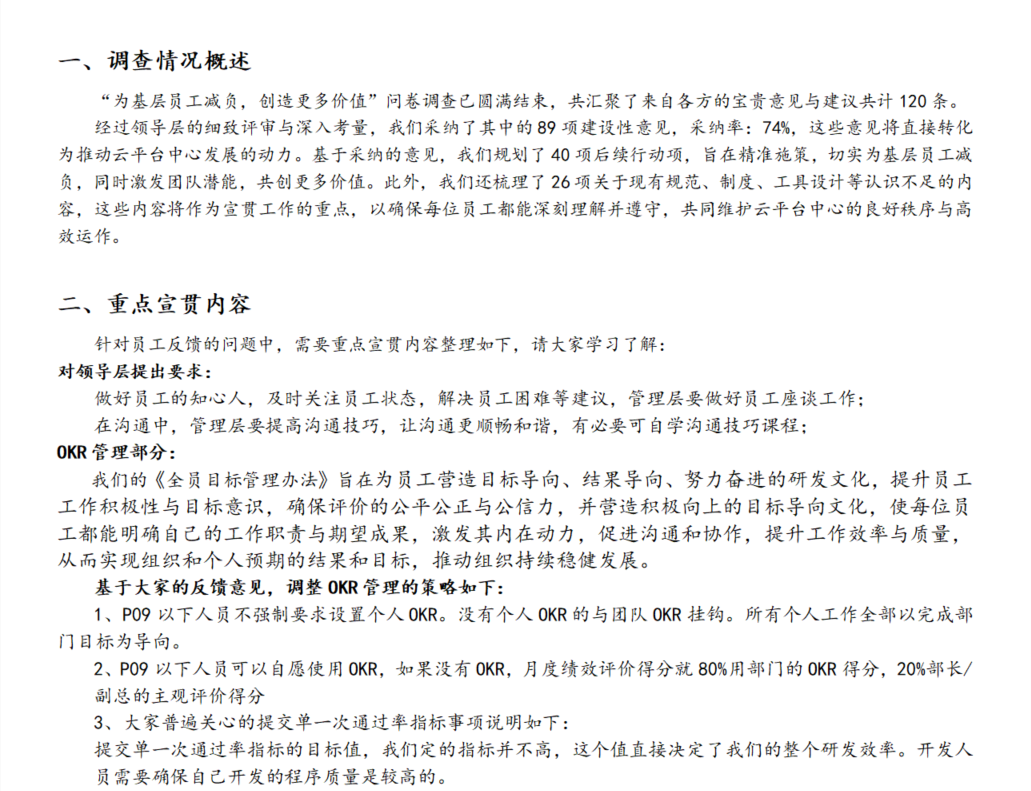 “为基层员工减负,创造更多价值” 问卷调查反馈与落地方案