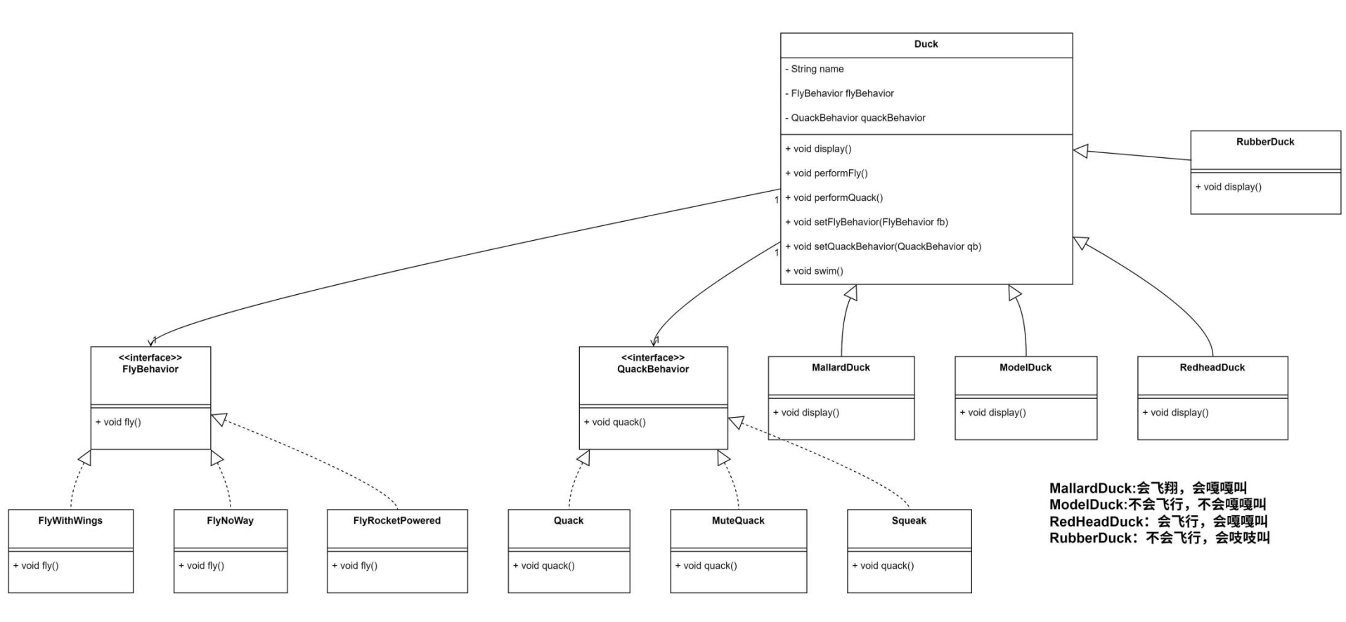 第一章中提到了“策略模式”,并以这个模式为例解决鸭子产品研发过程中的难题。