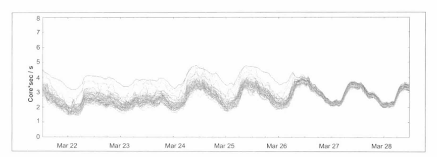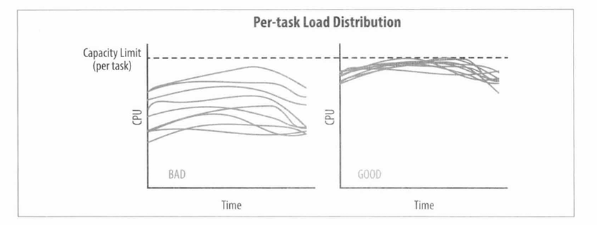 在理想情况下,某个服务的负载会完全均匀地分发给所有的后端任务。在任何一个时间点,最忙和最不忙的任务永远消耗同样数量的CPU。
