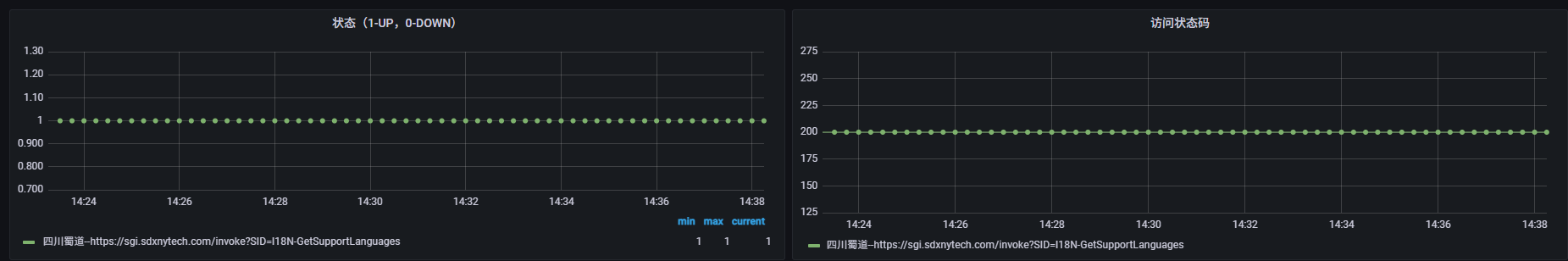 具体落地时,我们先在钉钉文档中梳理了所有环境的域名清单,按重要性对项目进行分级:比如海外 SaaS 生产环境、四川蜀道、Ionchi 等。针对不同的项目和不同的重要级别,配置了探测规则:每 15 秒对系统运行有重要影响的接口进行探测。监控维度上,我们重点关注两个核心指标: