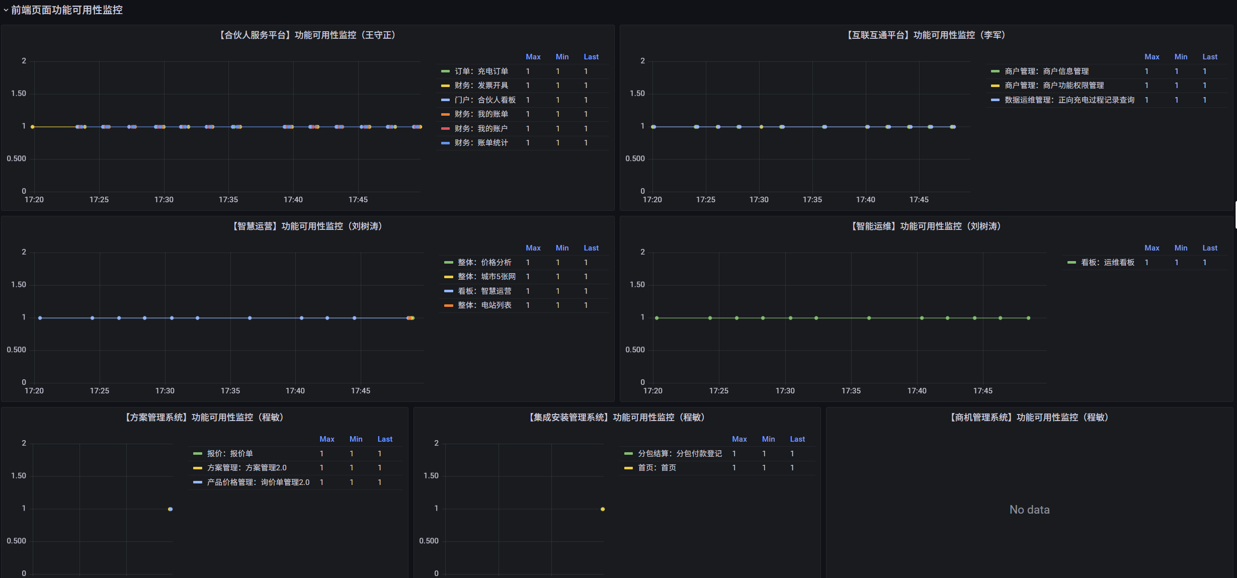 在我们早期的环境部署工作时,已经打下了良好基础。在生产环境和各个项目环境中,我们广泛使用了telegraf、monitoragent、埋点等方式,将服务器、中间件、数据库、业务应用的指标统一写入InfluxDB、Prometheus中,并通过Grafana进行展示。这套体系解决了“有数据”的问题。