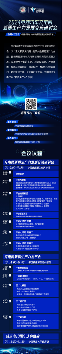 更多详情请见特来电资讯“2024电动汽车充电网新质生产力发展交流研讨会将于7月20日举行”