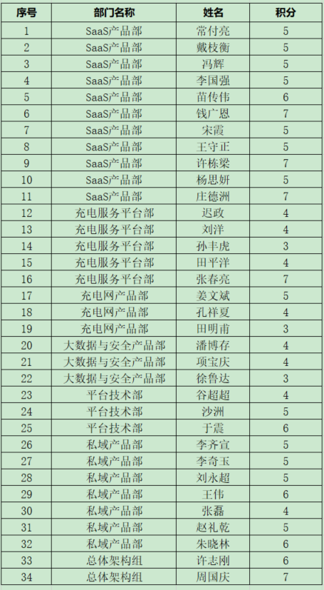 各位战友: 大家好。我们秉承“价值创造”的研发文化,根据每位战友的工作表现与贡献度,由云平台管理层集体综合评价,评选出4月份的“价值创造者”。并根据贡献给予相应的积分激励。 4月份“价值创造者”名单及积分激励情况如下: