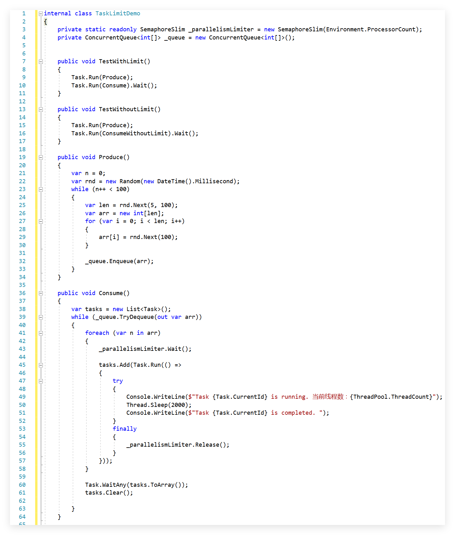 使用 SemaphoreSlim 这一轻量级同步原语,精准控制同时执行的 Task 数量上限,有效避免了高并发场景下可能导致的线程池饥饿问题。确保系统在高压下依然保持稳定、可预测的性能,防止因资源耗尽而导致的服务雪崩。