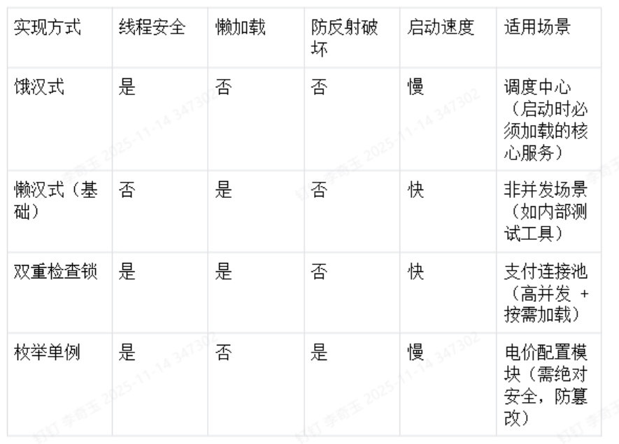 调度中心/电价配置:选枚举单例,因需防恶意反射修改配置,且启动时加载不影